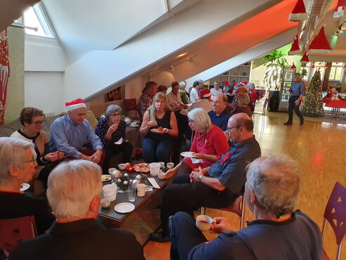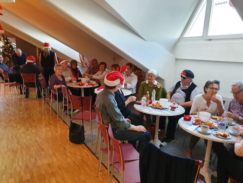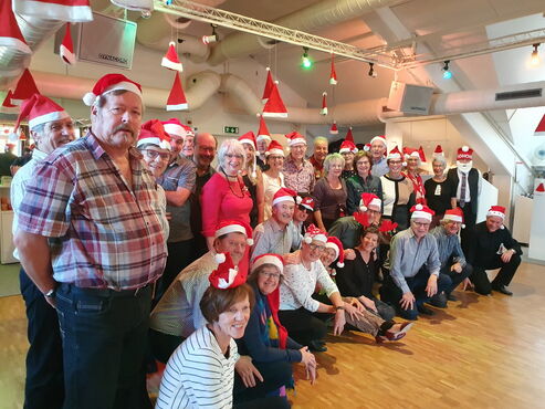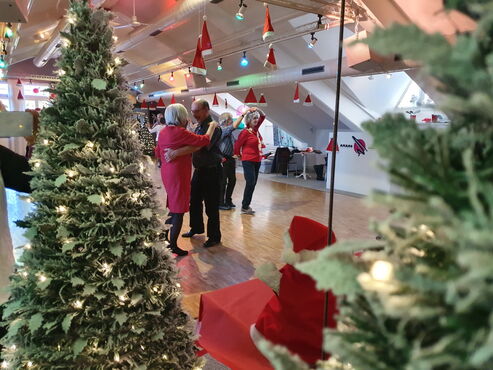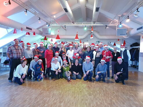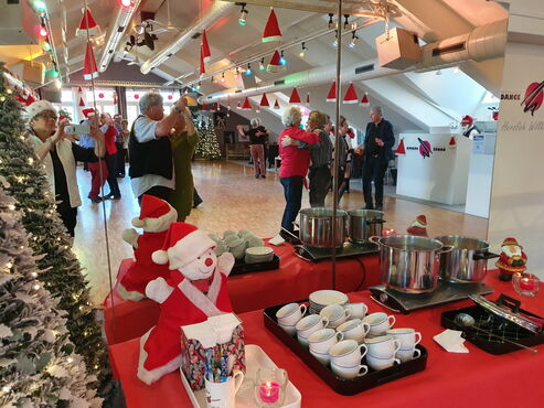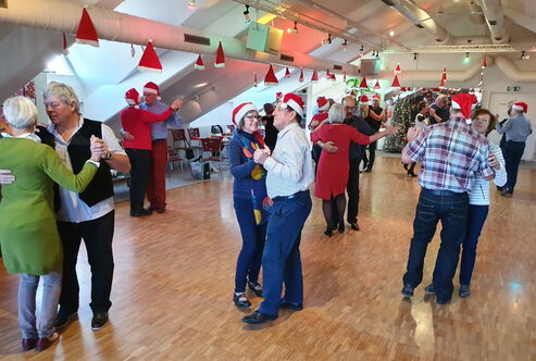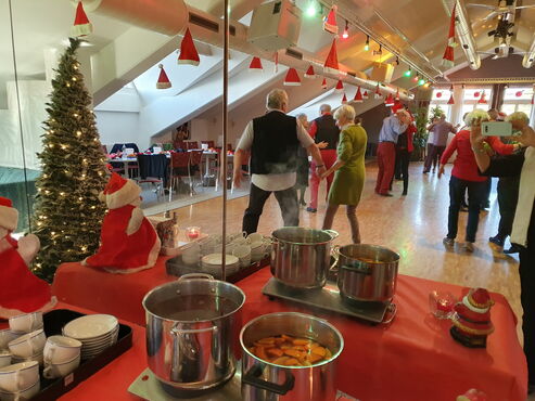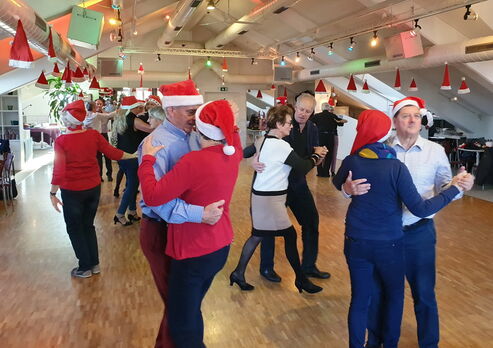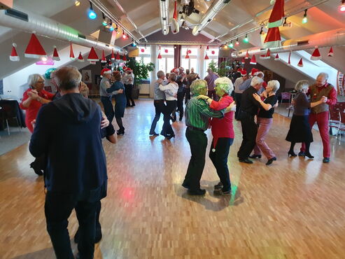 … mit weihnächtlicher Tanzmusik. Nüssli, Manderindli, Punsch und Glühwein lassen Adventsstimmung aufkommen – und natürlich nicht vergessen… die Tanzenden tragen das Ihre zur guten Stimmung bei: Sie erscheinen nicht nur mit stets guter Laune, sondern diesmal auch im Chlausen-Mützen-Look.