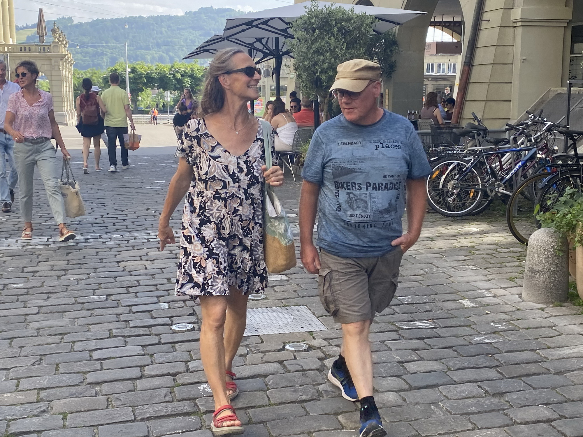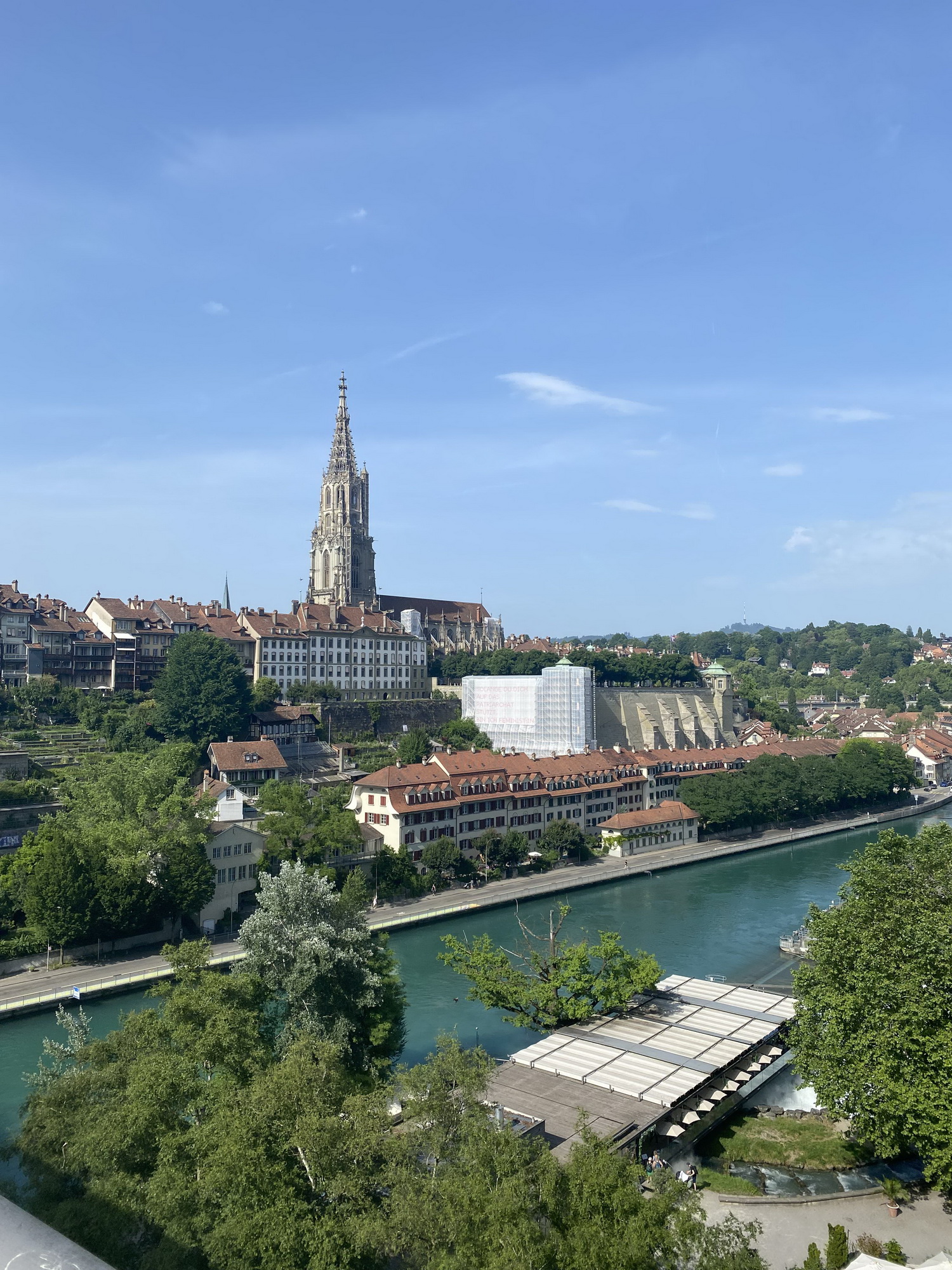 Anschliessend verschob sich die ganze Gruppe Richtung Kursaal Bern – nicht ohne unterwegs noch an der Frauendemo vorbeizukommen, die mit lautstarker Energie und starken Botschaften ebenfalls Eindruck hinterliess.